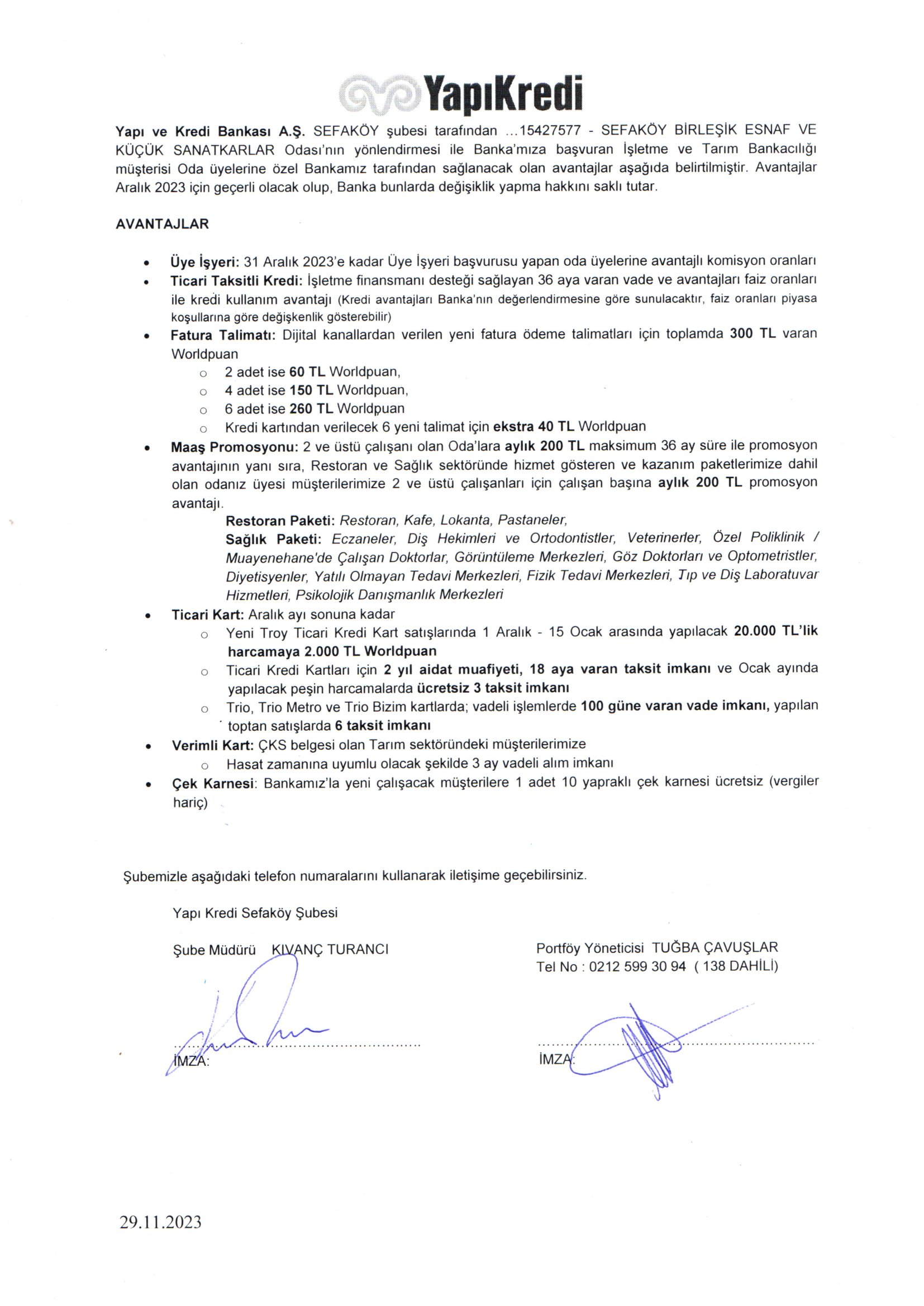 YapıKredi bankasından oda üyelerimize özel avantajlar
