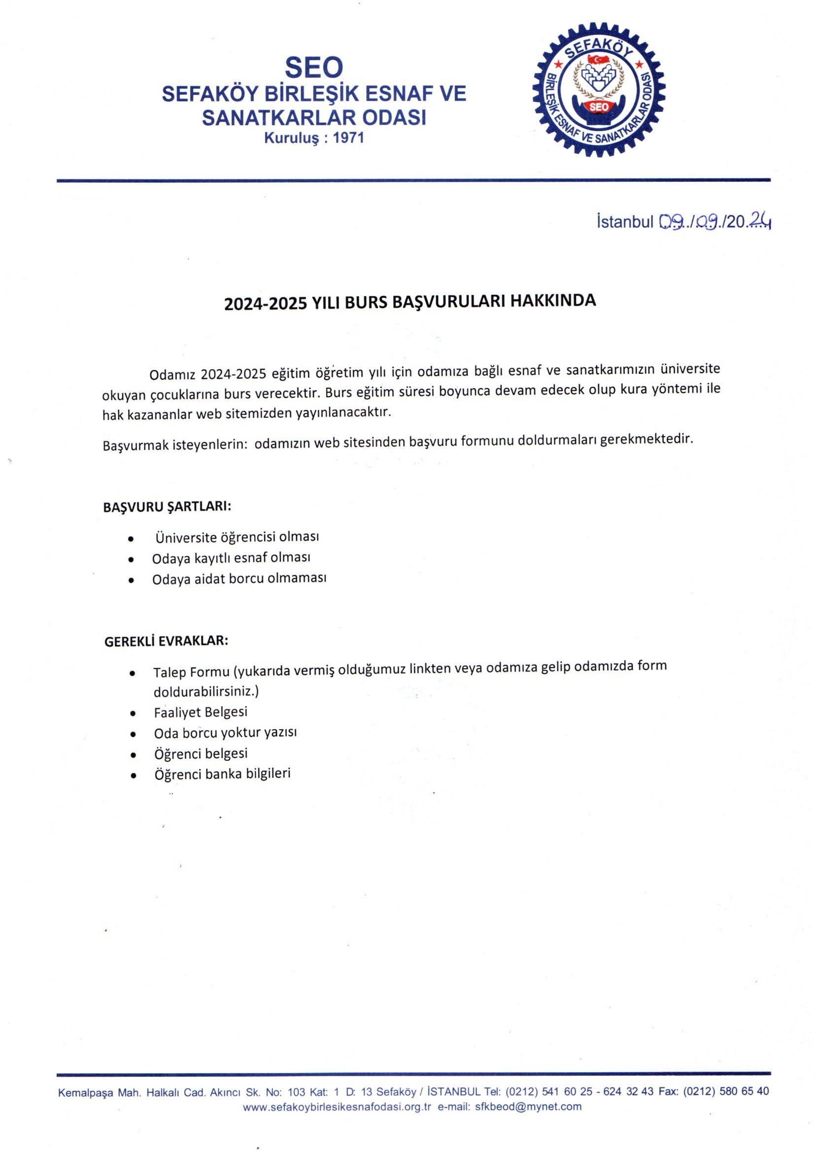 2024-2025 EĞİTİM ÖĞRETİM BURS BAŞVURULARI HAKKINDA BAŞVURU FORMUNA ULAŞMAK İÇİN TIKLAYINIZ https://forms.gle/F4U8G54hty3TzWiGA