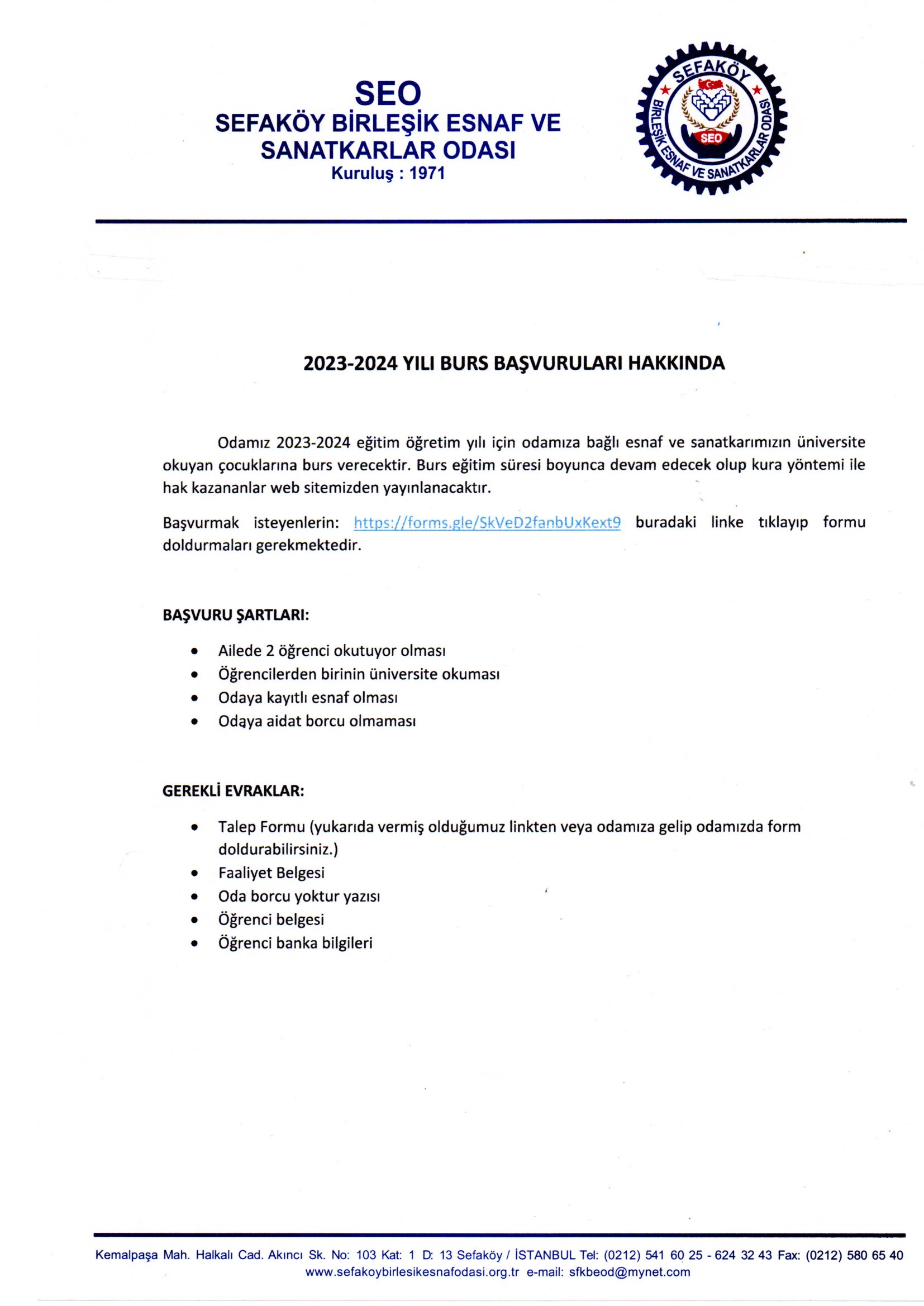 2023-2024 YILI BURS BAŞVURULARI BAŞLADI BAŞVURMAK İÇİN: https://forms.gle/SkVeD2fanbUxKext9 TIKLAYINIZ