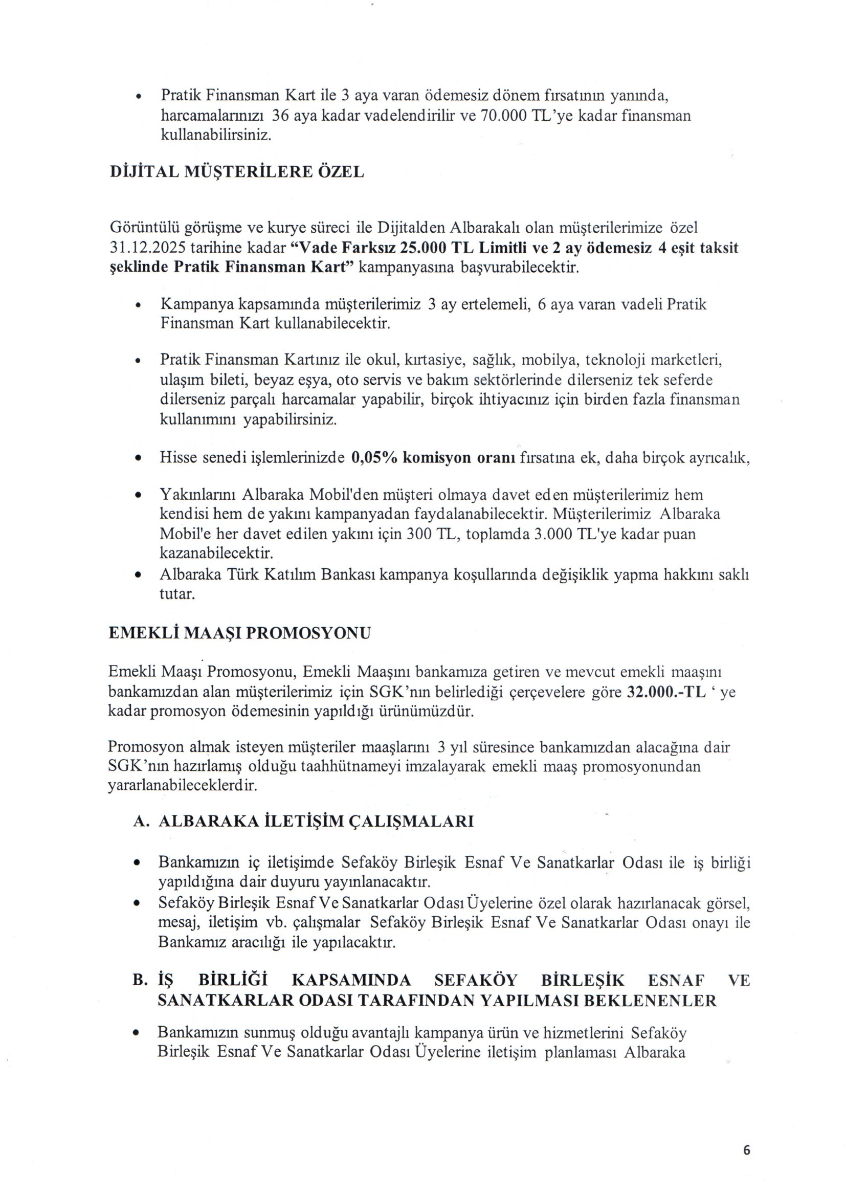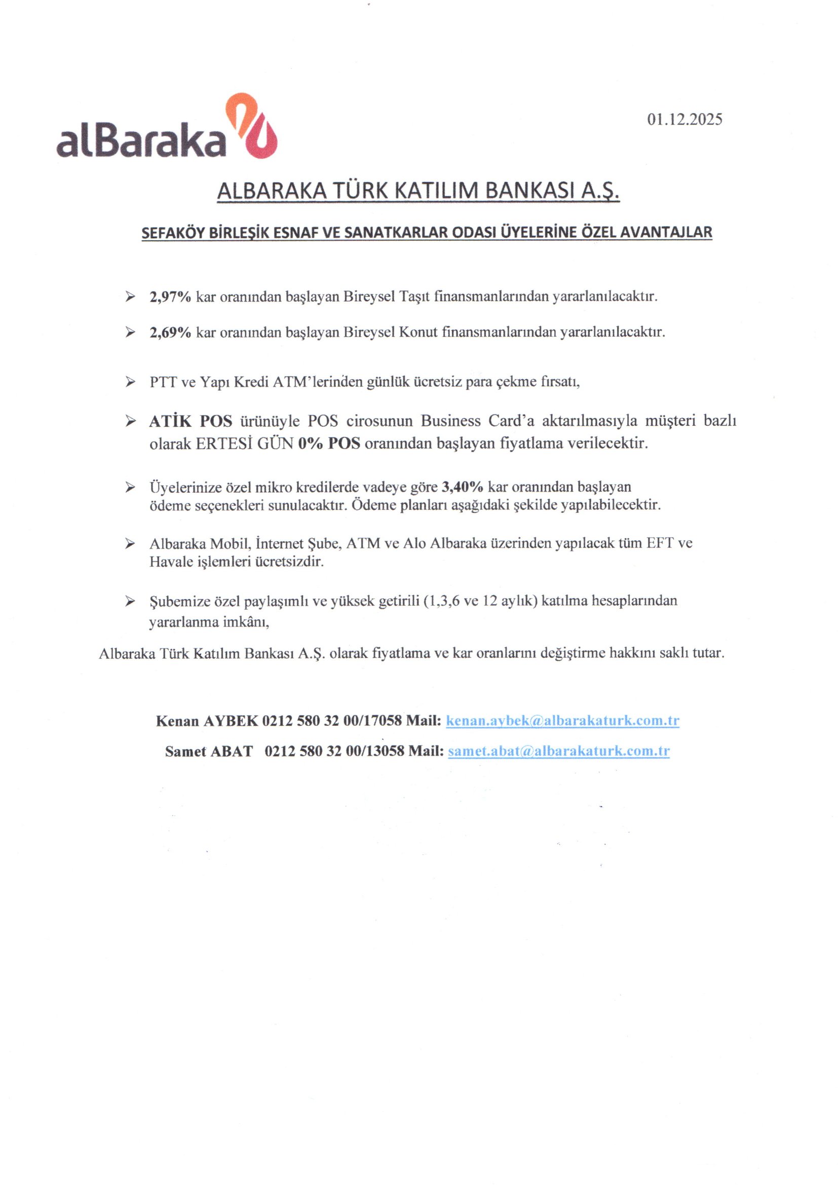 Albaraka Türk ile Esnafımıza Özel Yapmış Olduğumuz Anlaşma