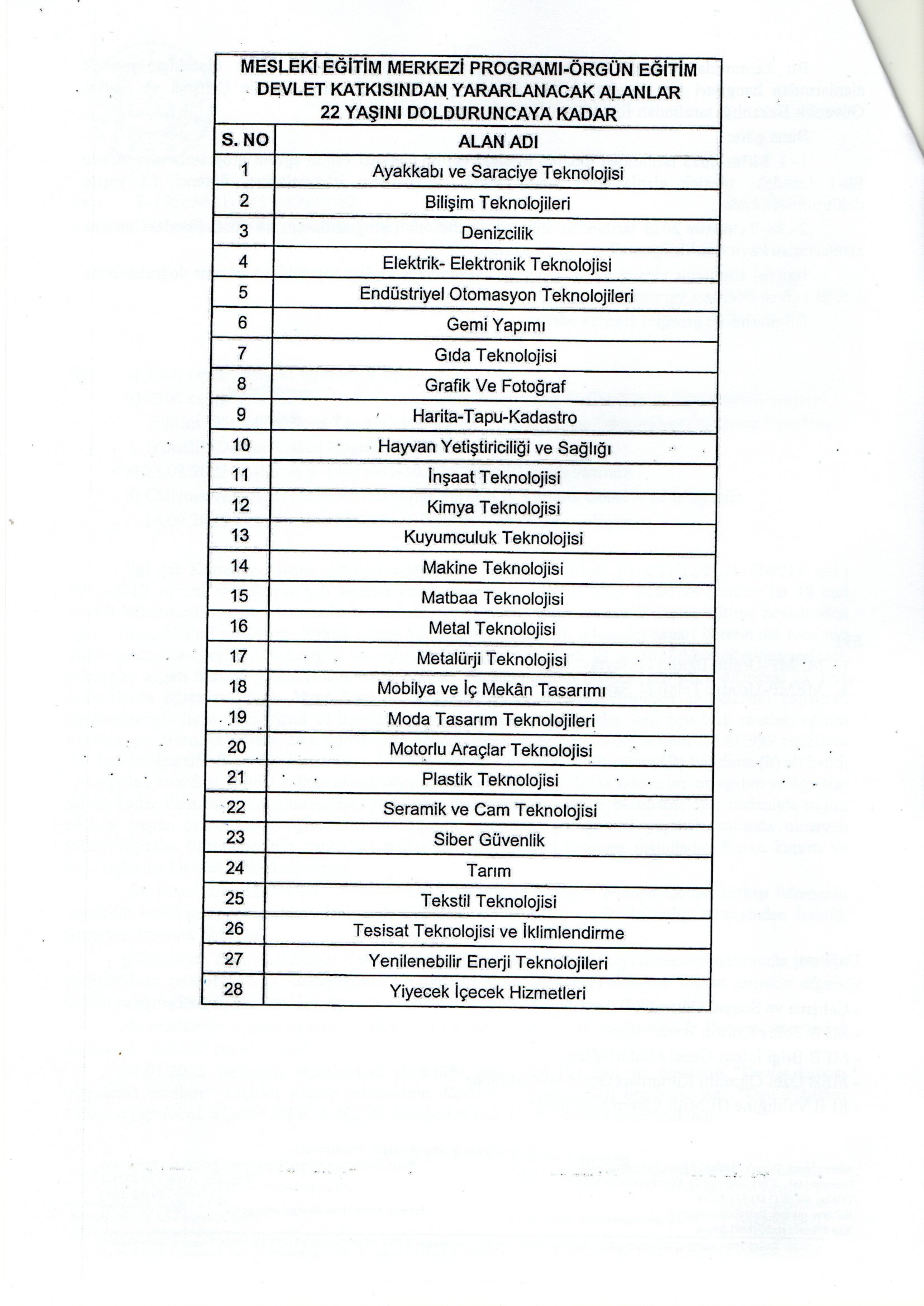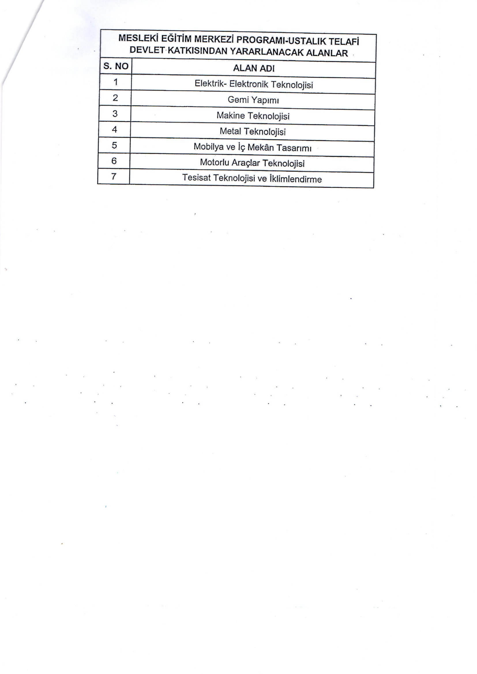 DEVLET TEŞVİĞİNDEN YARARLANACAK MESLEK DALLARI HAKKINDA