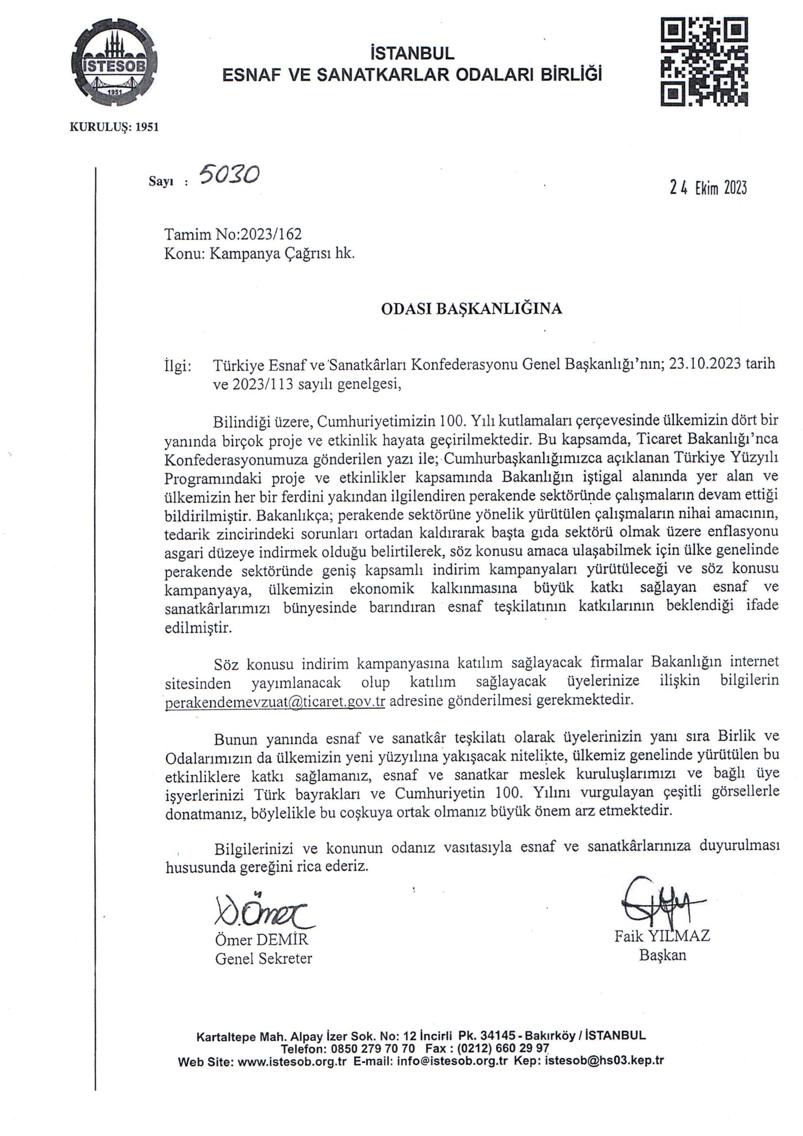 Eviniz ve iş yerlerinizi Cumhuriyetimizin 100.Yılı dolayısıyla bayraklarla süslenmesi hakkında.