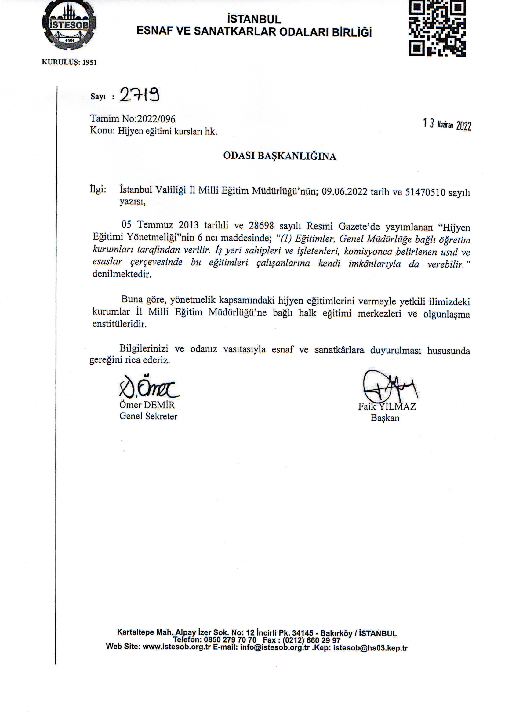 Hijyen Eğitimi Kursları Hakkında Bilgilendirme