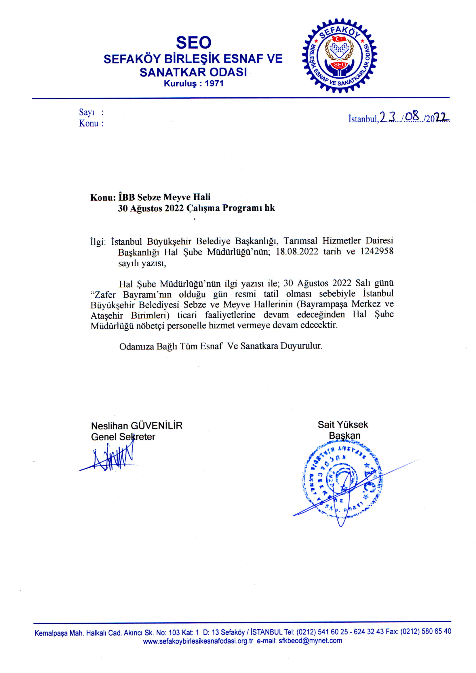 Sefaköy Birleşik Esnaf ve Sanatkarlar Odası