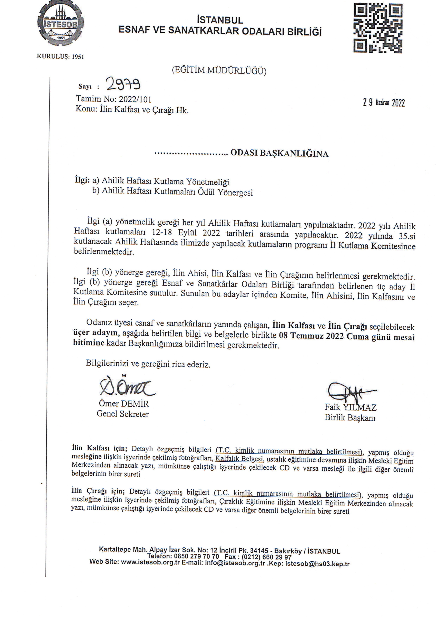 İlin Kalfası ve Çırağı Hakkında Bilgilendirme!