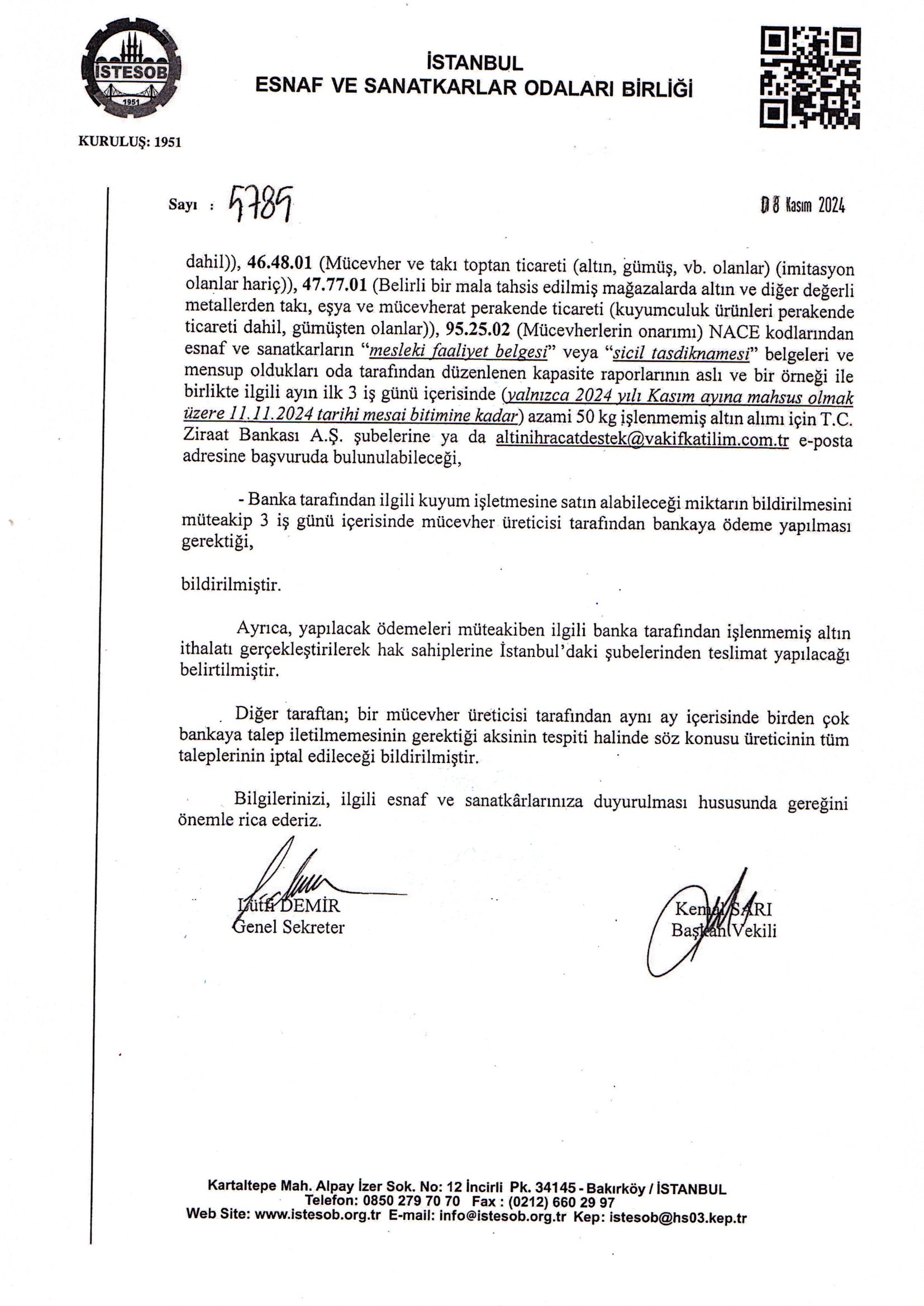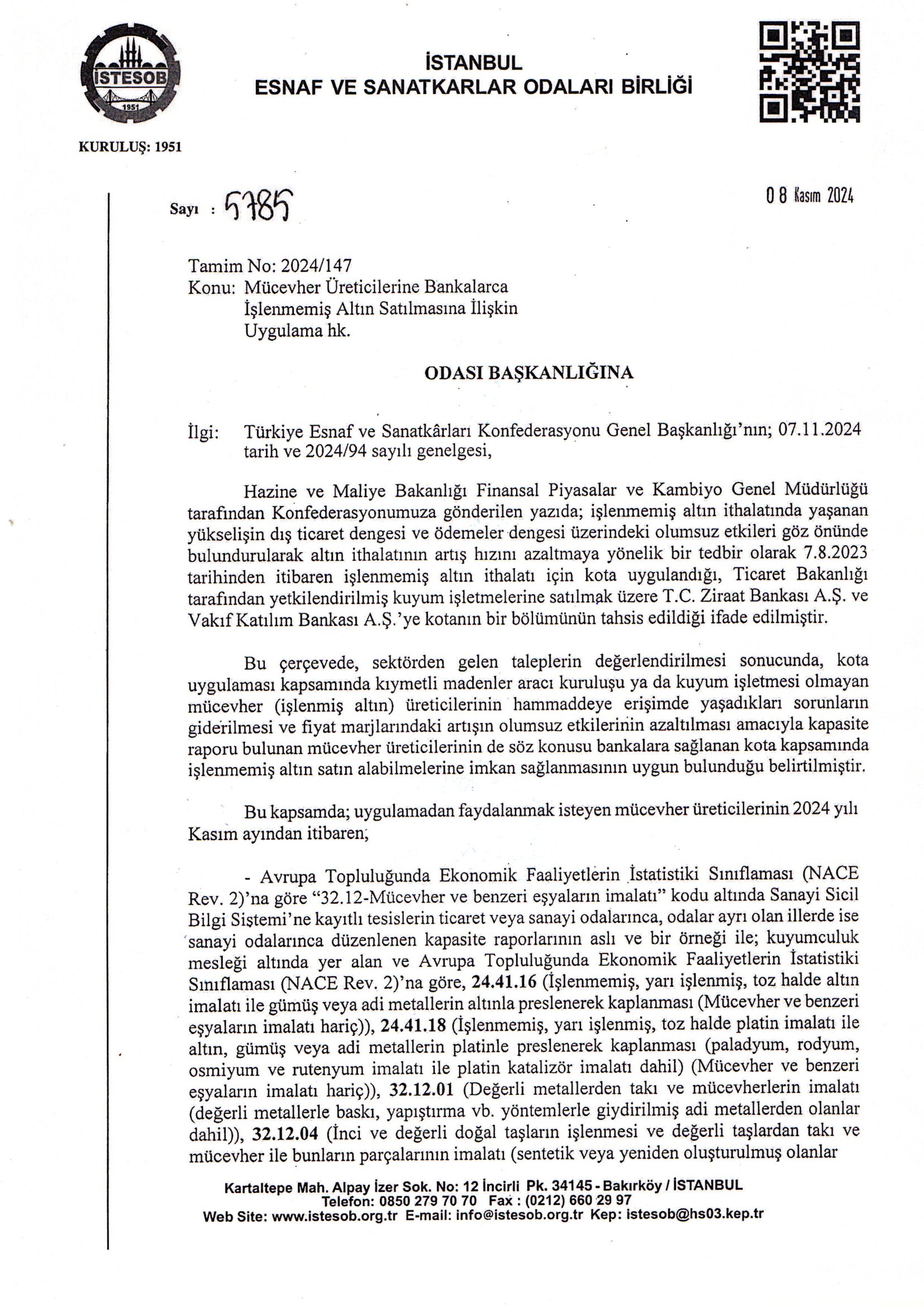 MÜCEVHER ÜRETİCİLERİNE BANKALARDA İŞLENMEMİŞ ALTIN SATILMASINA İLİŞKİN UYGULAMA HAKKINDA