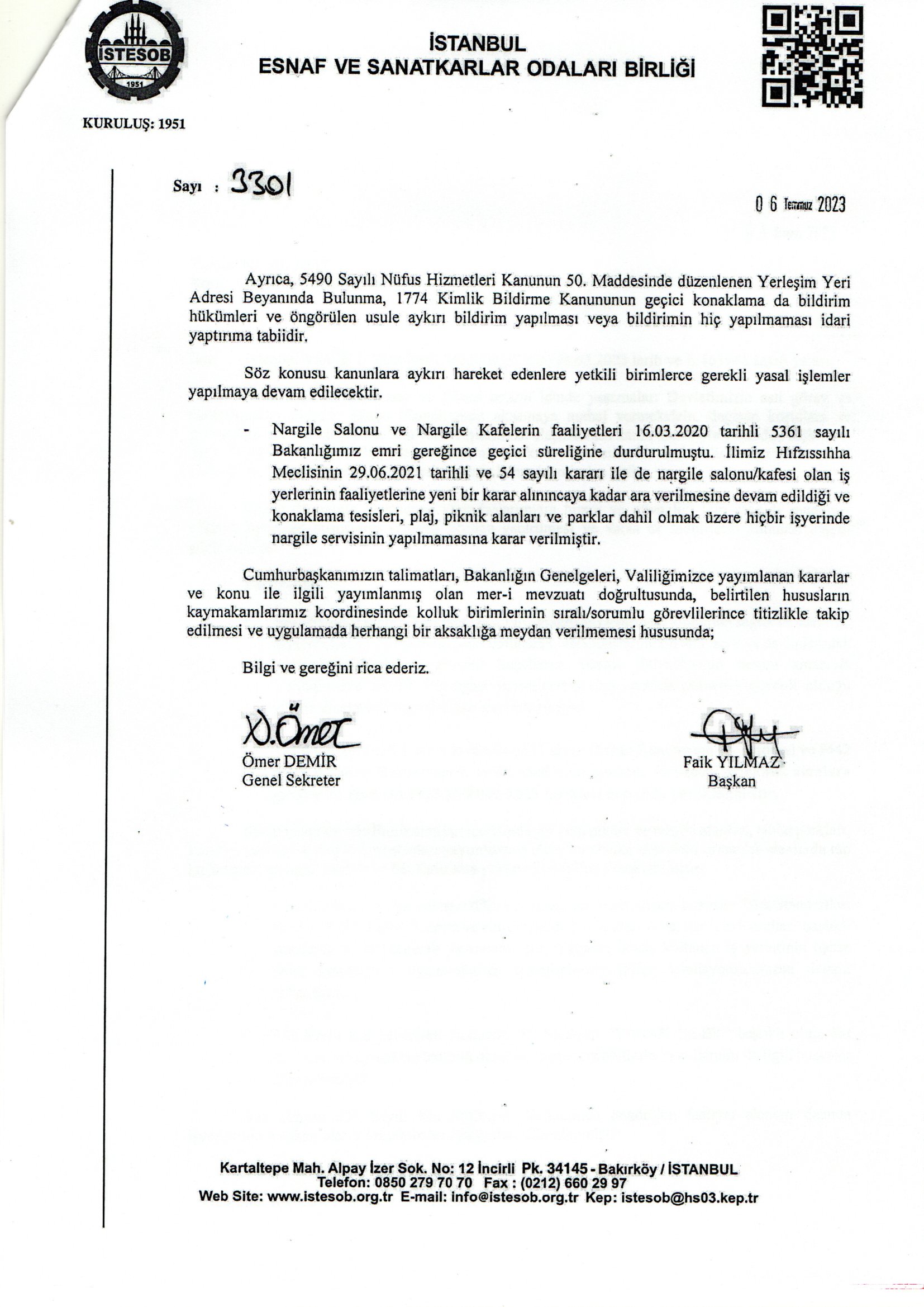 NARGİLE SALONU VE NARGİLE KAFELERİN FAALİYETLERİ HAKKINDA BİLGİLENDİRME