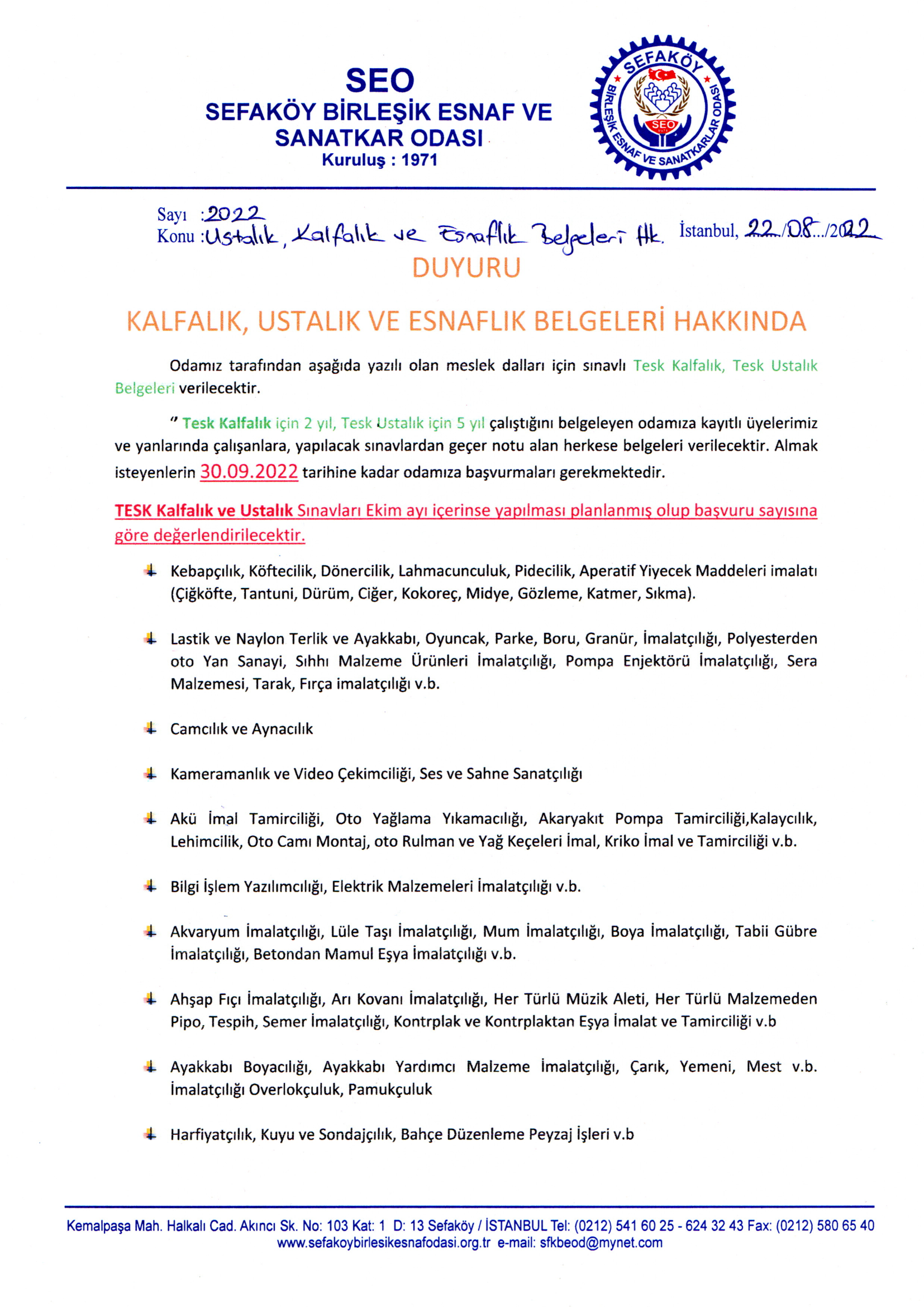 USTALIK, KALFALIK VE ESNAFLIK BELGELERİ HAKKINDA!
