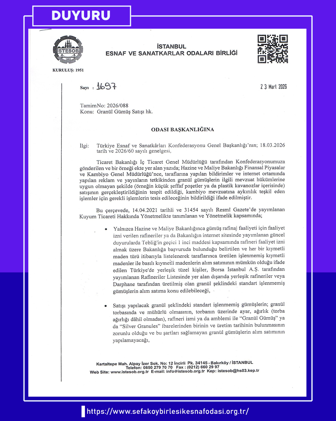 GRANÜL GÜMÜŞ SATIŞI HAKKINDA