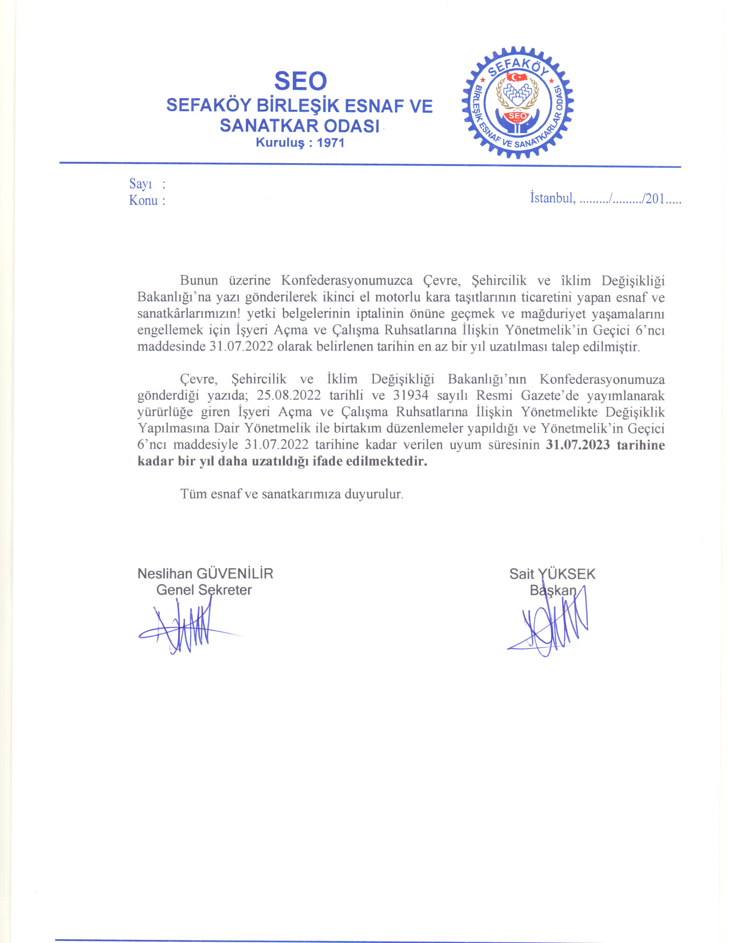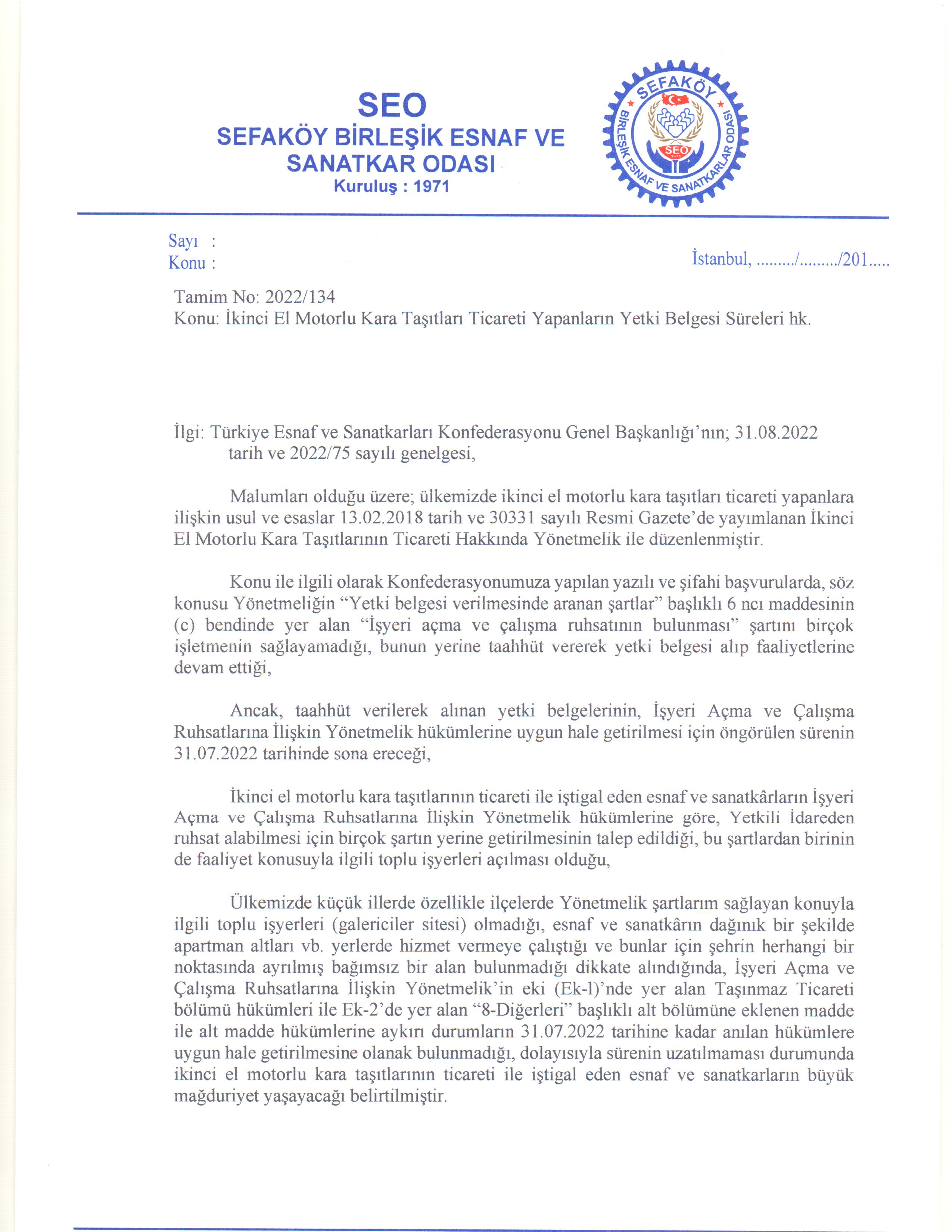 İkinci El Motorlu Kara Taşıtları Ticareti Yapanların Yetki Belgesi Süreleri Hakkında